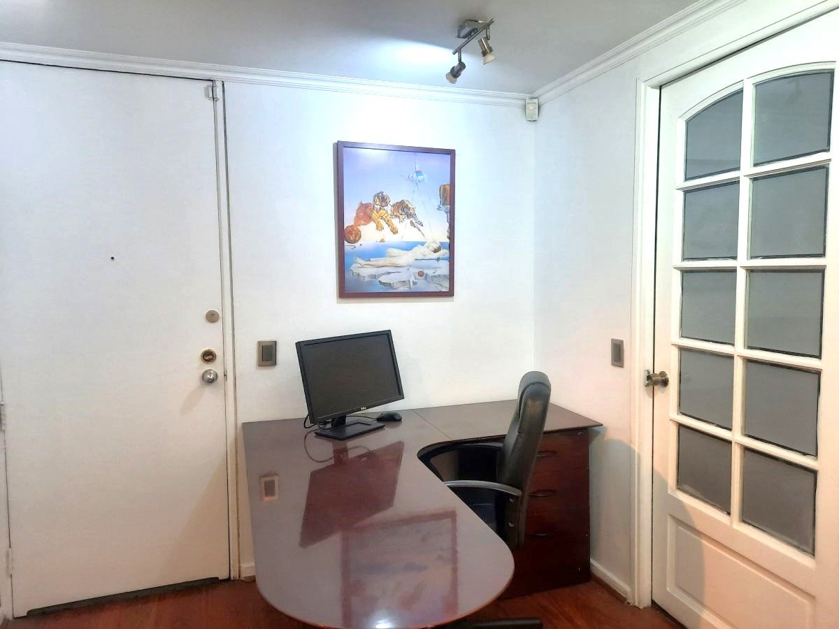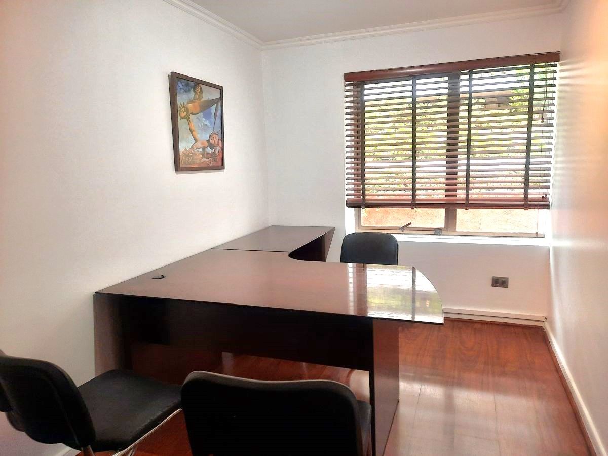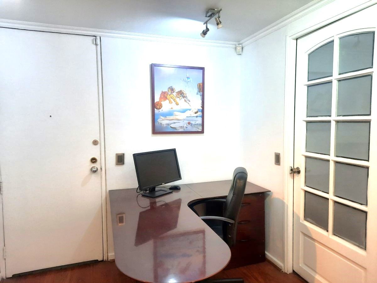 Oficina habilitada. Muy buenas condiciones. Arriendo más IVA. Recepción, archivero. 3 privados. Sala reuniones. 2 baños. 1 estacionamiento a UF 6, IVA incluído. La oficina puede ser arrendada con o sin muebles. Con muebles más IVA.