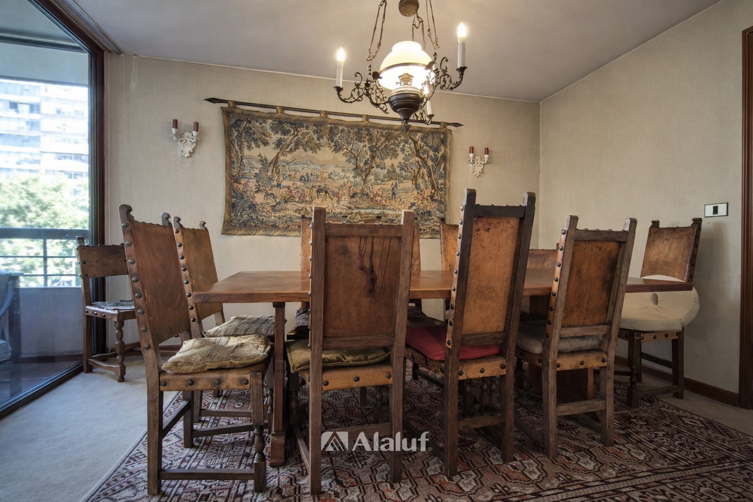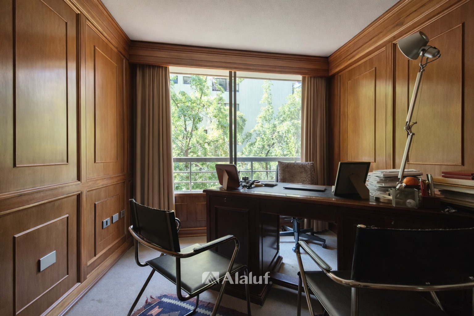 CARACTERÍSTICAS GENERALES Superficie:: 174 m² útiles, 192 m² totales (aprox.) 2 Estacionamientos 1 Bodega DISTRIBUCIÓN INTERIOR Amplio hall de entrada Living y comedor separados, con salida a terraza Escritorio de gran estilo (ideal home office) 3 dormitorios amplios con closets Dormitorio principal en suite 2 baños completos 1 baño de visitas Dormitorio de servicio con baño completo Amplia cocina Logia independiente Terrazas en dormitorio principal y en living-comedor EQUIPAMIENTO Y TERMINACIONES Pisos: Alfombra en dormitorios y living-comedor Cerámicos en cocina y baños Calefacción: losa radiante por piso ESPECIFICACIONES DEL EDIFICIO Conserjería, Seguridad 24 horas 7 Estacionamientos de visitas GASTOS ASOCIADOS Gastos comunes: $390.000 aprox. Contribuciones: $485.420