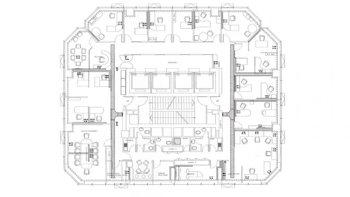 Oficina: 415m². piso completo Cuenta con recepción, privados, baños, kitchenette. Estacionamientos disponibles a UF 4. bodegas UF 0,3/m². Gasto común UF 0,11 x m². app.