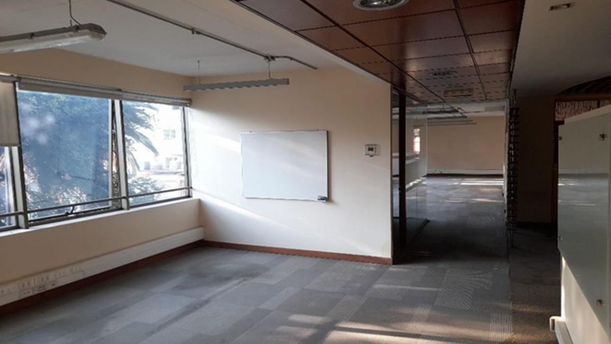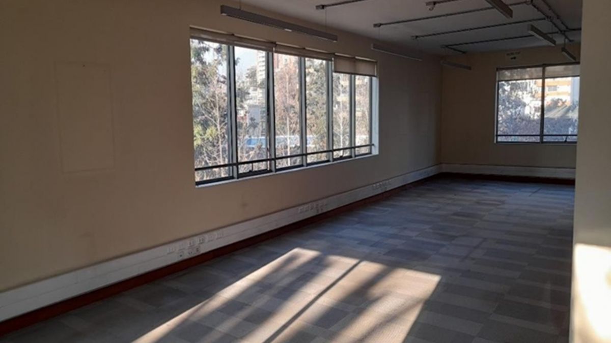 Oficina habilitada, medio piso a pasos de estación de Metro Pedro de Valdivia. Calle tranquila. Estacionamientos disponibles UF 3.5 c/u. Gasto común UF 0.1 x m2 app.
