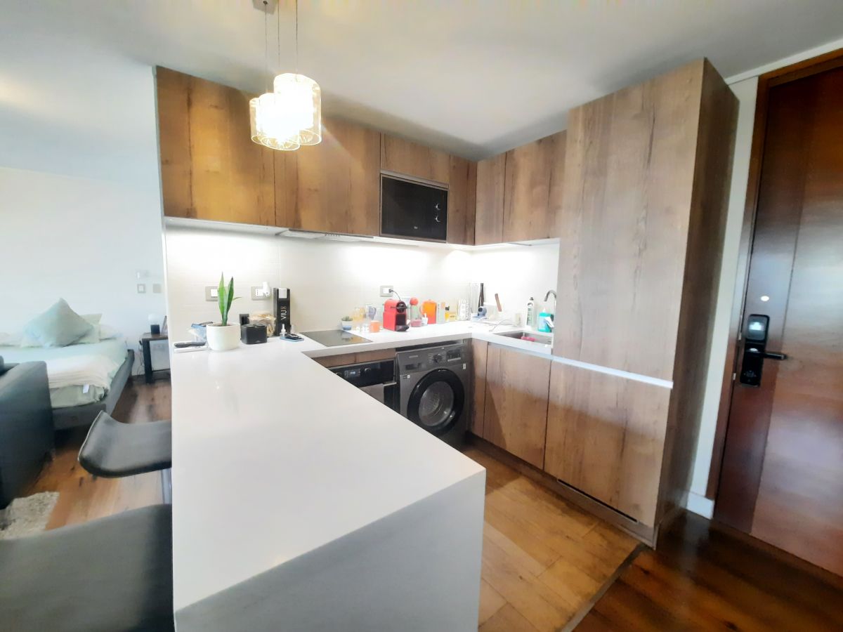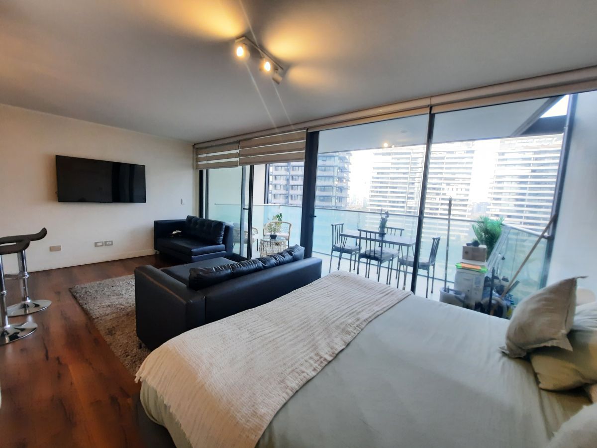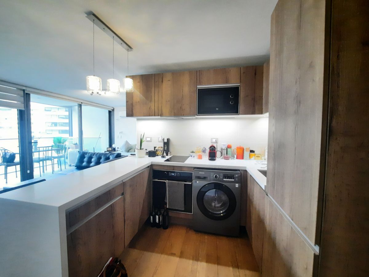 Edificio del año 2020, ubicado en sector Manquehue Kennedy, con inmejorables vias de conectividad, cercano a Parque Arauco, Clínica Alemana, colegios. etc. Departamento tipo estudio en 8° piso con orientación sur poniente, cuya distribución es: Hall entrada, living comedor cocina americana, dormitorio en suite. Terraza de buen tamaño El departamento cuenta con 2 estacionamientos y 1 bodega Gastos comunes de $ 100.000 El edificio tiene piscina panorámica, sauna, piscina temperada, , gimnasio, salas de eventos, sala de reunión.